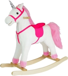 Am Kopf des Einhorns befinden sich Holzgriffe, die für einen sicheren Halt und ein sicheres Spielen sorgen. Der Sattel ist mit bequemen Steigbügeln ausgestattet.