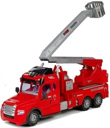 .Das rote, große Feuerwehrauto steht auf profilierten Kunststoffrädern. Es meistert kleine Unebenheiten auf seiner Strecke mühelos. Auf dem Fahrzeugaufbau sind die wichtigsten Elemente markiert, sodass es seinem großen Vorbild sehr ähnlich sieht.