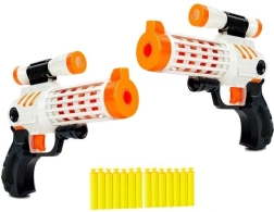 Das Set enthält zwei Pistolen und Schaumstoffgeschosse mit Saugnäpfen für sicheres Spiel. Kinder können sich als kleine Kämpfer betätigen und stundenlangen Spaß haben.