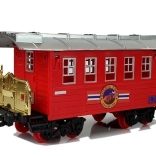 Dieses Spielzeug in Form einer Lokomotive bringt angenehme Erinnerungen an die Weihnachtszeit in Ihr Zuhause. Der Zug ist bei kleinen und größeren Kindern sowie ihren Vätern beliebt. Die Lokomotive besticht durch ihr schönes und detailliertes Design, hergestellt aus resistentem Kunststoff. Die Farbkombination aus intensivem Rot und kontrastierenden schwarzen, silbernen und goldenen Elementen ist wirklich ansprechend. Der hintere Teil des Führerhauses ist mit Fenstern ausgestattet, in die Kinder ihre Figuren platzieren können. Auf dem Spielzeug steht "Golden Line", und das Design ist von echten Zügen aus der Vergangenheit inspiriert.