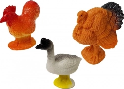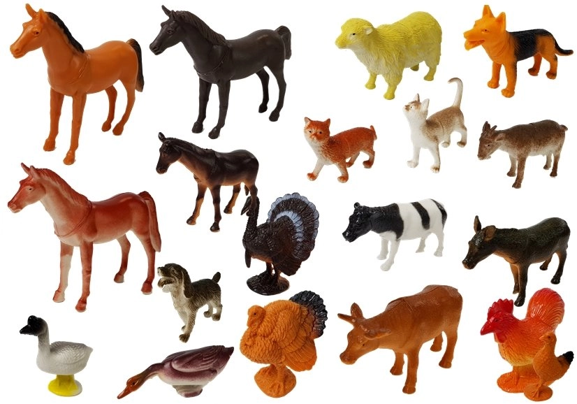 Das Aussehen und die Färbung erinnern an realistische Gegenstücke. Das gesamte Set enthält etwa 20 Figuren und eine Unterlage mit der Landschaft eines schönen, großen Bauernhofs. Naturfreunde werden sich bestimmt freuen. Auf der Unterlage befinden sich ein schönes Landhaus und große Felder für die Tiere. Das Set enthält u. a. Kühe, Pferde, Schafe, Truthähne, einen Hund, eine Katze, einen Hahn, einen Truthahn, eine Gans.