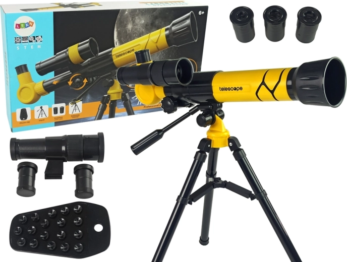 Astronomisches Teleskop für Kinder mit Smartphone-Halterung, gelb