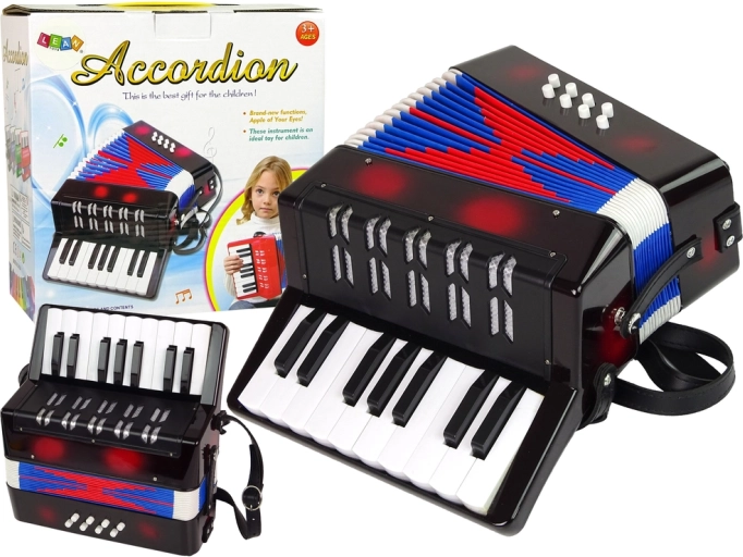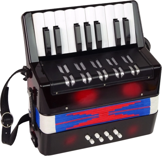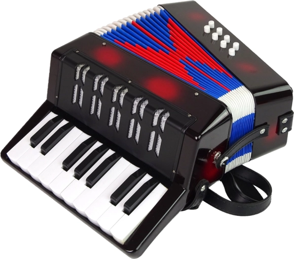 Kompaktes Kinderakkordeon mit 17 Tasten und 8 Bassknöpfen bietet einen realistischen Klang und eine einfache Bedienung für kleine Musiker. Fördert die Feinmotorik, das musikalische Gehör und das Rh... Mehr anzeigen