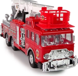 Dieses detailliert gestaltete Modell eines Feuerwehrautos bietet Kindern ein authentisches Erlebnis von Rettungseinsätzen. Das rote Design mit silbernen Elementen, funktionalen Lichtern und Soundeffekten überzeugt auf den ersten Blick. Der Star ist die auszieh- und neigbare Leiter mit 360°-Drehung, mit der Höhen bis zu 44 cm erreicht werden.