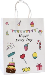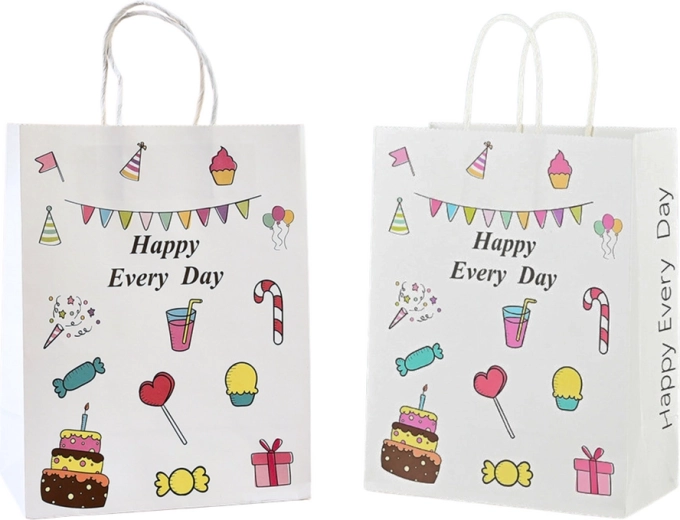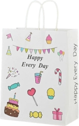 Diese Papiertüte ist mit farbenfrohen Grafiken und dem Aufdruck "Happy Every Day" verziert, was sie für eine Vielzahl von Feiern wie Geburtstage, Partys oder Treffen mit Angehörigen geeignet macht.