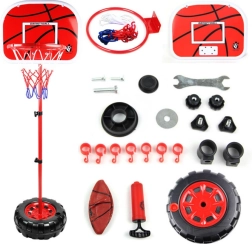 Großes Basketball-Set für Kinder ist ideal für aktive Freizeit im Freien. Es enthält einen verstellbaren Ständer für den Basketballkorb, ein Netz, einen Ball und eine Pumpe, wodurch es ein komplettes Set ist, das nach dem Aufbau sofort einsatzbereit ist.