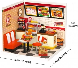 Genießen Sie die nostalgische Atmosphäre eines klassischen Schnellimbisses mit diesem detailreichen Miniaturmodell des Restaurants. Erstellen Sie Ihr eigenes Imbiss mit Burgern, Pommes, Chicken Nuggets und weiterem Zubehör ohne Klebstoff.