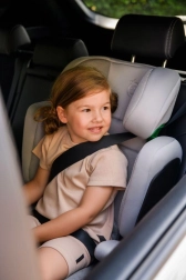 MoMi MEI ist ein Autositz für Kinder im Alter von 3,5 bis 12 Jahren mit einer Körpergröße von 100 bis 150 cm. Er ist mit einem zuverlässigen ISOFIX-Befestigungssystem mit klarer Anzeige ausgestattet, die die korrekte Befestigung und sichere Verbindung mit dem Fahrzeugsitz bestätigt, sowie mit einem verstärkten Seitenaufprallschutz, der die Energie bei einem Aufprall absorbiert. Die tiefe, dreilagige Kopfstütze lässt sich in 9 verschiedene Positionen an die Körpergröße des Kindes anpassen und ist auch auf längeren Fahrten weich und bequem. Der Autositz MoMi MEI erfüllt die Anforderungen der Norm ECE R129/03.