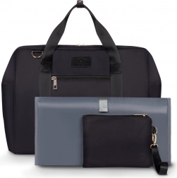 Im Lieferumfang enthalten sind eine praktische Wickelauflage für den hygienischen Windelwechsel und eine Kosmetiktasche für Pflegeartikel oder Kleinigkeiten – alles aufeinander abgestimmt zu einem eleganten Set.