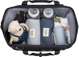 Dank der verstellbaren Tragemöglichkeiten und der Befestigungsmöglichkeit am Kinderwagengriff eignet sich die Tasche ideal für Stadt und Reisen. Im Lieferumfang enthalten sind eine praktische Wickelauflage für den hygienischen Windelwechsel und eine Kosmetiktasche für Pflegeartikel oder Kleinigkeiten.