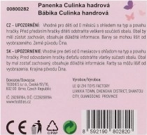 Die Puppe Culinka verzaubert Kinder auf den ersten Blick: Sie hat weiche gelbe Haare, zu Zöpfen gebunden, ein liebliches Lächeln und ein fröhliches Outfit in Rosa- und Lilatönen. Sie wurde so gestaltet, dass sie sanft zur Kinderhaut ist und zugleich robust für den täglichen Spielspaß.