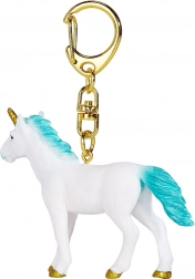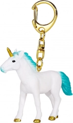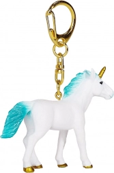 Ein weißes Einhorn mit türkisfarbener Mähne sowie goldenem Horn und Hufen verleiht Schlüsseln und Taschen eine besondere Note.