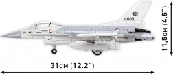 Mit 425 COBI-Bausteinen können Sie dieses ikonische Jagdflugzeug mit Details im Maßstab 1:48 bauen. Das Modell enthält abnehmbare und anpassbare Raketen AIM-9 Sidewinder und AIM-120 AMRAM. Das Set enthält auch eine Pilotenfigur mit Sauerstoffmaske und Helm mit Drucken der niederländischen Luftwaffe.