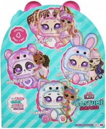 Mit L.O.L. Surprise Tweens Verkleidung Wunder kommt ein neues und spannendes Abenteuer. Beginnen Sie mit dem Reißen des Reißverschlusses an der Unterseite der Verpackung und entfernen Sie die pinke Abdeckung, um einen geheimnisvollen Papierumschlag zu enthüllen. Beobachten Sie, wie die Verpackung größer wird und sich füllt. Wenn sie vollständig aufgeblasen ist, reißen Sie das Papier auf und entdecken Sie das zauberhafte türkisfarbene Kätzchenkostüm!