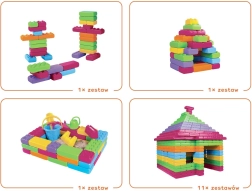 Das Set enthält 33 große Blöcke – Ziegel in 3 Formen, die kleinen Baumeistern jede Menge Spaß bieten und zugleich Kreativität, räumliches Vorstellungsvermögen, Hand-Auge-Koordination und logisches Denken fördern sowie Teamarbeit unterstützen.