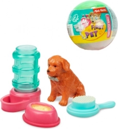 Diese niedliche Überraschungskugel MY FIRST PET erfreut jeden kleinen Tierfreund. Im Inneren befindet sich eine Figur eines Hündchens oder Kätzchens sowie drei Zubehörteile für spielerisches Pflegen eines Haustiers.