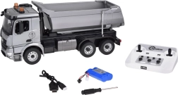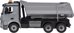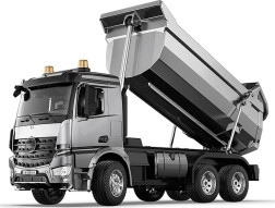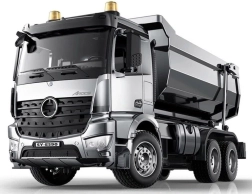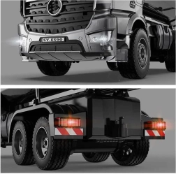 Dieser ausgefeilte RC‑Kipper Mercedes‑Benz AROCS bietet ein maximal realistisches Erlebnis: originale Front mit Logo, detailgetreues Fahrerhaus mit öffnenden Türen sowie eindrucksvolle Licht‑ und Motor‑/Fahrgeräusche, Blinker und Rückfahrsignal. Die Metallmulde und der Hebemechanismus sorgen für Robustheit und Authentizität.
