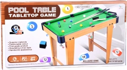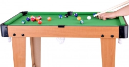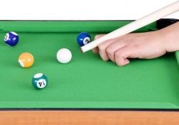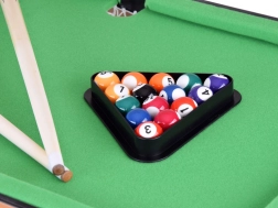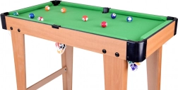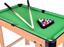 Kompakter Kinder-Billardtisch mit den Maßen 73,5 × 40,5 × 59 cm bringt Spielhallen-Spaß nach Hause. Stabile Konstruktion, klassisches grünes Tuch und komplettes Zubehör (2 Queues, Kugeln, Dreieck, Bürste und Kreide) sorgen für einfache Montage und stundenlangen Spielspaß, der Geschicklichkeit, Konzentration und Hand-Auge-Koordination fördert.