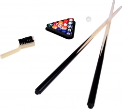 - 2 × Queue, Set Billardkugeln, Weiße, Dreieck, Bürste, Kreide