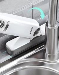 Der Mini Mop Ruhhy ist mit einem Klicksystem ausgestattet, das sicherstellt, dass die Aufsätze fest verbunden bleiben. Er ist ideal für eine präzise Reinigung auch an schwer zugänglichen Stellen dank flexiblen Armen und seitlichen Bewegungen.