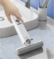 Entdecken Sie den kompakten Mini Mop Ruhhy, der ideal für gründliches, streifenfreies Reinigen von Fenstern ist, dank seines ergonomischen Griffs und des innovativen Wasserauspress-Mechanismus mit einem Finger.