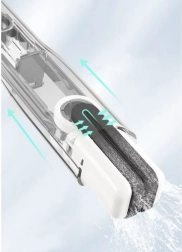 Ermöglicht einfaches Auspressen des Wassers mit einem Finger-Schiebemechanismus und erleichtert somit den Auswringprozess.
