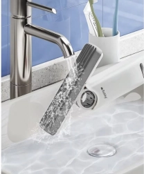 Die Aufsätze können einfach ausgespült werden, indem man sie mehrmals ausspült und das Wasser mit einem Finger auspresst. Der Mop ist zudem mit einem ergonomischen Griff ausgestattet, der die Reinigung erleichtert und Ihre Hand nicht belastet.