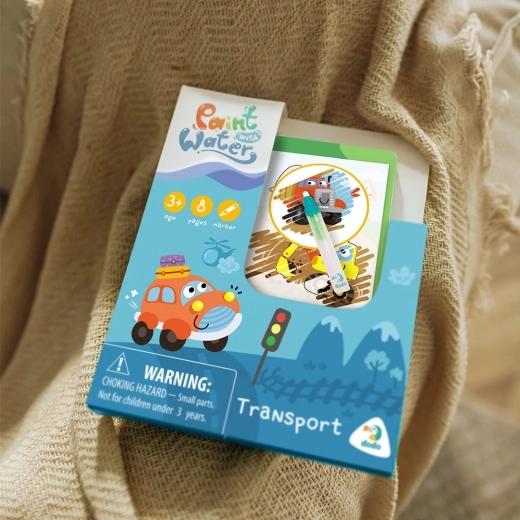 Der kreative Block mit Verkehrsmotiven bietet Kindern endlosen Spaß: Füllen Sie den Wasserpinsel, streichen Sie über die Seite und sehen Sie zu, wie kräftige Farben und Details von Autos, Zügen oder Flugzeugen erscheinen. Nach dem Trocknen kehren die Illustrationen in ihren ursprünglichen Zustand zurück und die Kinder können wieder von vorn malen.