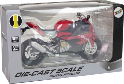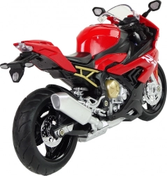 Das Modell der BMW S1000RR wurde in roter Farbe gefertigt, jedes Detail, wie zum Beispiel die Kette am Fahrwerk, wurde mit größter Sorgfalt ausgeführt. Jeder Motorradfan wird begeistert sein. Durch Drücken des hinteren Teils des Motorrads werden Geräusche und Frontlichter aktiviert, bewegliche Lenker ermöglichen das Lenken während des Spiels und Gummireifen haften am Boden. Dank der ausklappbaren Stütze sieht das Motorrad im Regal perfekt aus.