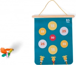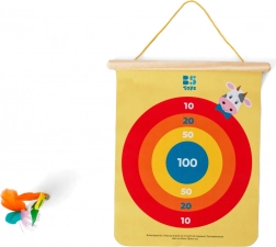 Dieses klassische Dartspiel in kindgerechter Ausführung bietet sicheres und fesselndes Wettspielen zu Hause oder im Kindergarten. Die beidseitige Hängezielscheibe (40 × 31 cm) bietet zwei Spielflächen für mehr Spielvarianten und längeren Spaß. Bunte, federleichte Darts mit magnetischer Spitze haften leicht an der Scheibe und sind ideal für kleine Spieler.