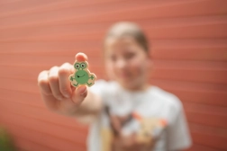 Bunte Holzchips mit verschiedenen Gesichtsausdrücken und Farben regen die Fantasie an und halten die Aufmerksamkeit bei logischen Aufgaben.