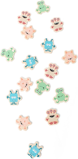Der Lieferumfang enthält 16 hölzerne Monster-Chips und 8 beidseitig bedruckte Spielkarten in zwei Größen, sodass zwischen einfacheren und anspruchsvolleren Aufgaben gewählt werden kann. Die hochwertige Verarbeitung aus Holz und Karton sorgt für Langlebigkeit, auch bei häufiger Nutzung zu Hause und in der Schule.