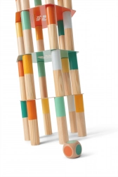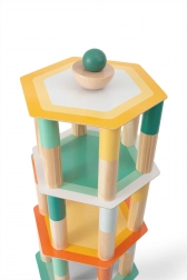 Baut einen hohen Turm aus bunten Säulen und Plattformen und versucht abwechselnd, je nach Würfelfarbe das richtige Teil herauszuziehen. Jeder Zug ist spannend – eine unglücklich gewählte Säule kann den gesamten Turm samt der oben platzierten Halbkugel zum Einsturz bringen. Das Spiel besteht aus hochwertigem Holz und Karton, ist sicher, robust und ideal für Kinder und Erwachsene.