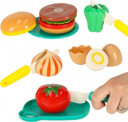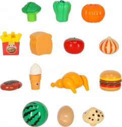 Das umfangreiche Set für die Kinderküche enthält alles, was kleine Köche brauchen: Pizza in Stücken, Hamburger, Gemüse, Obst und Süßigkeiten. Die Teile sind halbiert und mit Klett verbunden, sodass Kinder sicher das Schneiden, Servieren und das Zusammenstellen eines Menüs für die ganze Familie üben können.