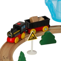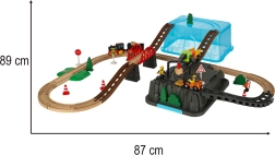 Holzeisenbahn-Baustellenset mit 55 Teilen, Lokomotive und Zubehör