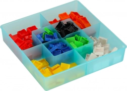Die praktische Kunststoffbox mit Fächern hält alle Komponenten übersichtlich sortiert. Dadurch eignet sich das Spiel für zu Hause, den Kindergarten und unterwegs – schnelles Aufbauen und Verstauen garantiert.