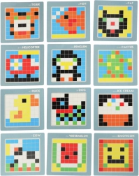 Dieses kreative Mosaik ist ein hervorragendes Lernspielzeug für Kinder ab 3 Jahren. Bunte quadratische Teile werden in ein Raster auf einer stabilen Platte gelegt – so trainieren Kinder logisches Denken, räumliche Vorstellungskraft und Konzentration. Dank der beiliegenden Vorlagenkarten lässt sich zwischen einfacheren und anspruchsvolleren Motiven wählen.