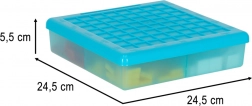 Der Kunststoff-Organizer mit Deckel und unterteilten Fächern hält die Teile übersichtlich und erleichtert Aufräumen sowie Transport.