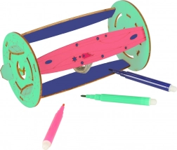 Dank der beiliegenden Zubehörteile können Kinder verschiedene Phänomene erproben: Elastizität und potenzielle Energie (Gummiband-Modell), Gleichgewicht und Zugspannung in Schnüren (hängendes „UFO“-Modell) sowie die Wirkung von Gravitation und Bewegung (Katapult mit Metallkugel). Filzstifte in 9 Farben ermöglichen es, jedes Projekt zu gestalten und zu personalisieren.