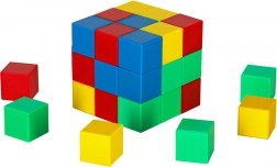 Das Set enthält 64 magnetische Klötze, die sich durch Magnete verbinden und es ermöglichen, unterschiedliche Konstruktionen zu erstellen. Jeder Klotz hat die Form eines Quadrats, was es dem Kind ermöglicht, frei einfache oder komplexere Bauwerke zu erschaffen. Die Klötze sind in intensiven Farben: grün, gelb, rot und blau, die die Aufmerksamkeit auf sich ziehen und zur Erstellung bunter Projekte einladen.