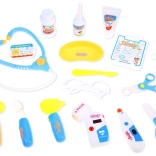 Stethoskop, Thermometer, Otoskop, Blutdruckmessgerät, Spritze, Schere, Skalpell, Brille und weiteres Zubehör – alles für ein komplettes Doktorspiel.