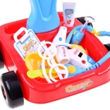 Stabiler Ärztetrolley mit Ablageflächen und Rollen ermöglicht Kindern, die Instrumente im ganzen Zimmer zu transportieren und alles griffbereit zu haben.