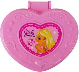 Dieses rosa Schönheitsset enthält Kosmetikartikel, die speziell für Kinder entworfen wurden, alles in der Form eines anziehenden Herzens.