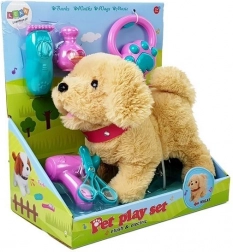 Nach dem Einlegen von AA-Batterien bewegt sich der Hund und imitiert ein echtes Hündchen täuschend echt. Kinder können ihn an der beiliegenden Leine führen.