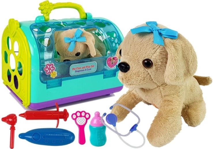 - Transportbox, Plüschhund mit Geräuschen, Thermometer, Fütterungsfläschchen, Spritze, Bürste, Laryngoskop-Spiegel, 2× provisorischer Gipsverband, Stethoskop