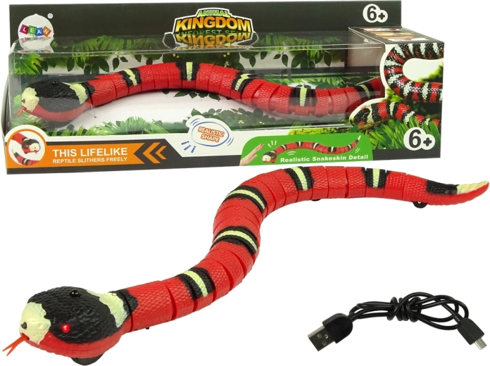 Entdecken Sie den Spaß mit der realistischen Schlange in Rot mit markanten schwarzen Streifen. Das Spielzeug fährt los, sobald Sie die Hand an den Kopf halten, kriecht geschmeidig, streckt und zieht die Zunge ein und wirkt dank der leuchtenden Augen überraschend lebendig. Perfekt für Kinder, die ausgefallene Spielzeuge lieben und gerne Freunde überraschen.