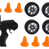 Im Lieferumfang sind austauschbare Räder für Drift und normales Fahren sowie Pylonen zum Bau eigener Strecken enthalten. Das Set umfasst außerdem einen 3,7-V-Akku und ein USB-Ladekabel, sodass Sie fast direkt nach dem Auspacken loslegen können.