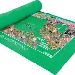 Die JUMBO-Rollmatte ist der ideale Helfer für alle Puzzlefans. Die grüne Filzunterlage mit den Maßen 150 × 100 cm eignet sich für Puzzles bis ca. 140 × 95 cm (typischerweise 3.000 Teile bei den meisten Herstellern). Die Matte lässt sich samt begonnenem Motiv einfach aufrollen und mit Gummibändern sichern – ohne Risiko, Teile zu verlieren.