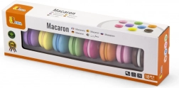Die zwei Hälften jeder Makrone sind mit einem Klettverschluss verbunden – Kinder können sie trennen und wieder zusammensetzen, neue „Geschmacksrichtungen“ kreieren und dabei Fingerfertigkeit sowie Koordination trainieren.