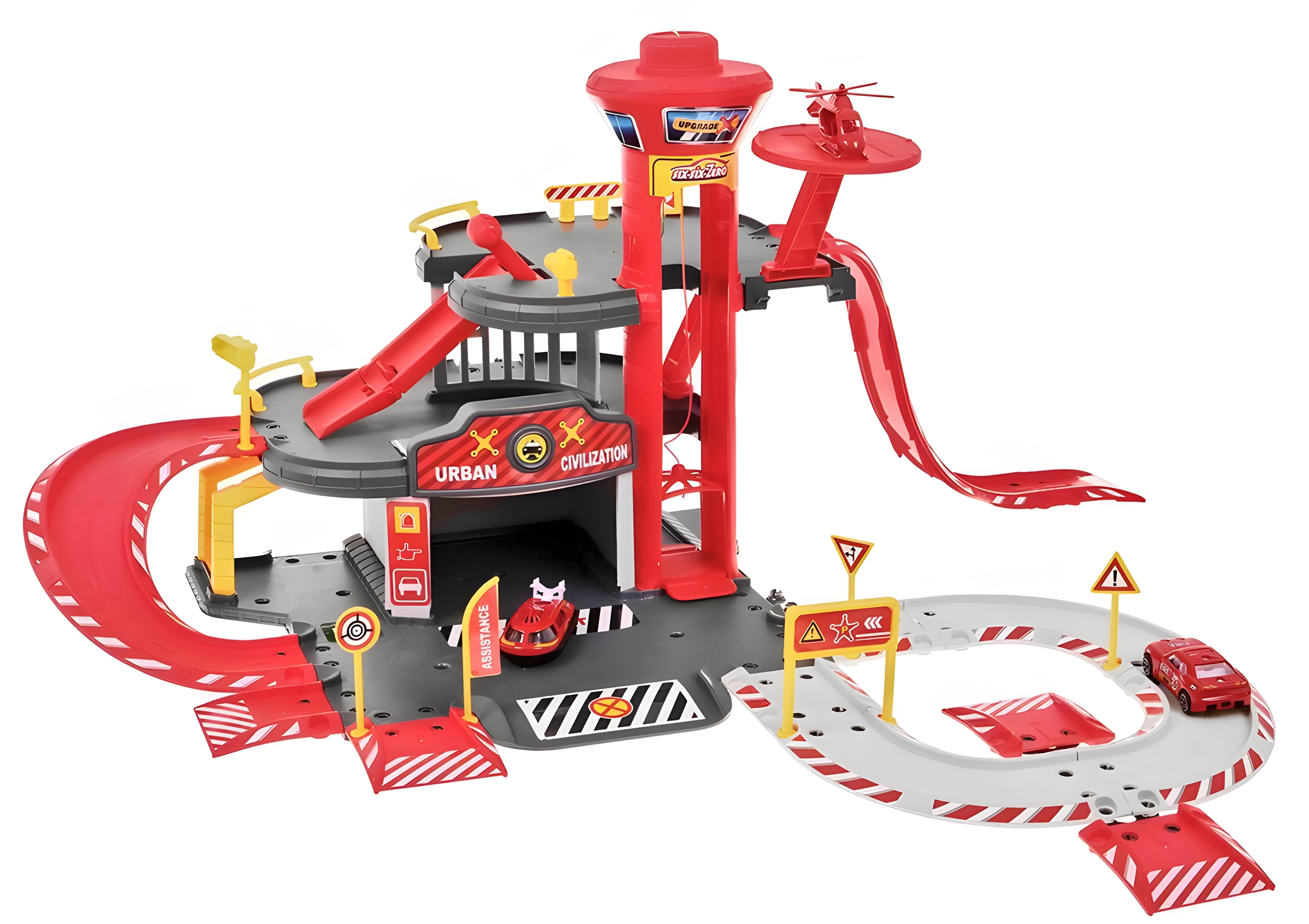 Die Spielzeuggarage enthält alles, was ein kleiner Fahrer braucht: